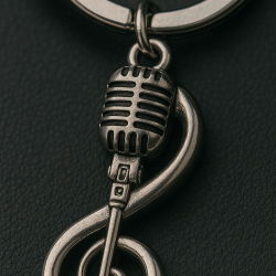 ¿Eres de los que respira música? Este llavero es pa' ti, bro. Diseñado con una clave de sol en forma elegante y rematado con un micro vintage que grita "soy artista". Ideal para colgar en las llaves, la mochila o el micro del estudio. 🖤